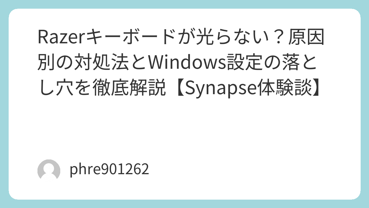 Razerのキーボードが光らない問題の多くは、実はちょっとした設定の衝突です。特にWindows 11ユーザーの方は、まず「ダイナミックライティング」の設定を疑ってみてください。