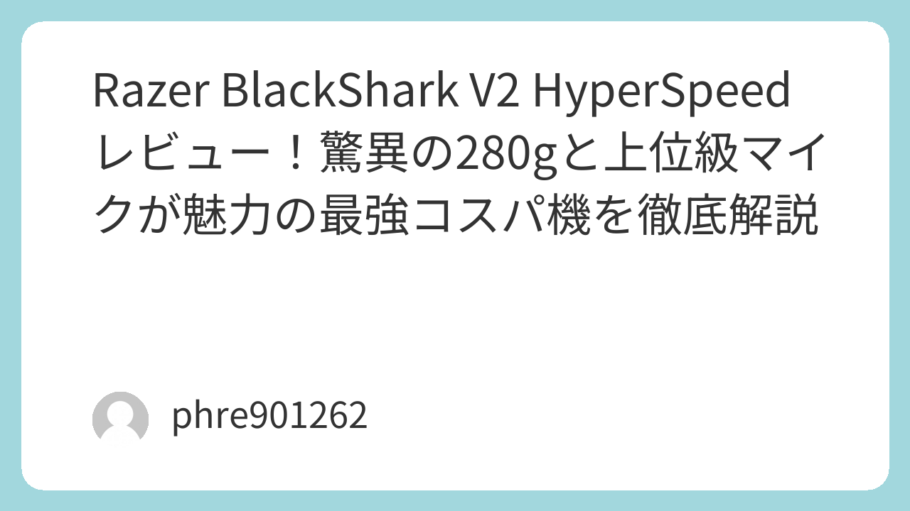 Razer BlackShark V2 HyperSpeedレビュー!驚異の280gと上位級マイクが魅力の最強コスパ機を徹底解説