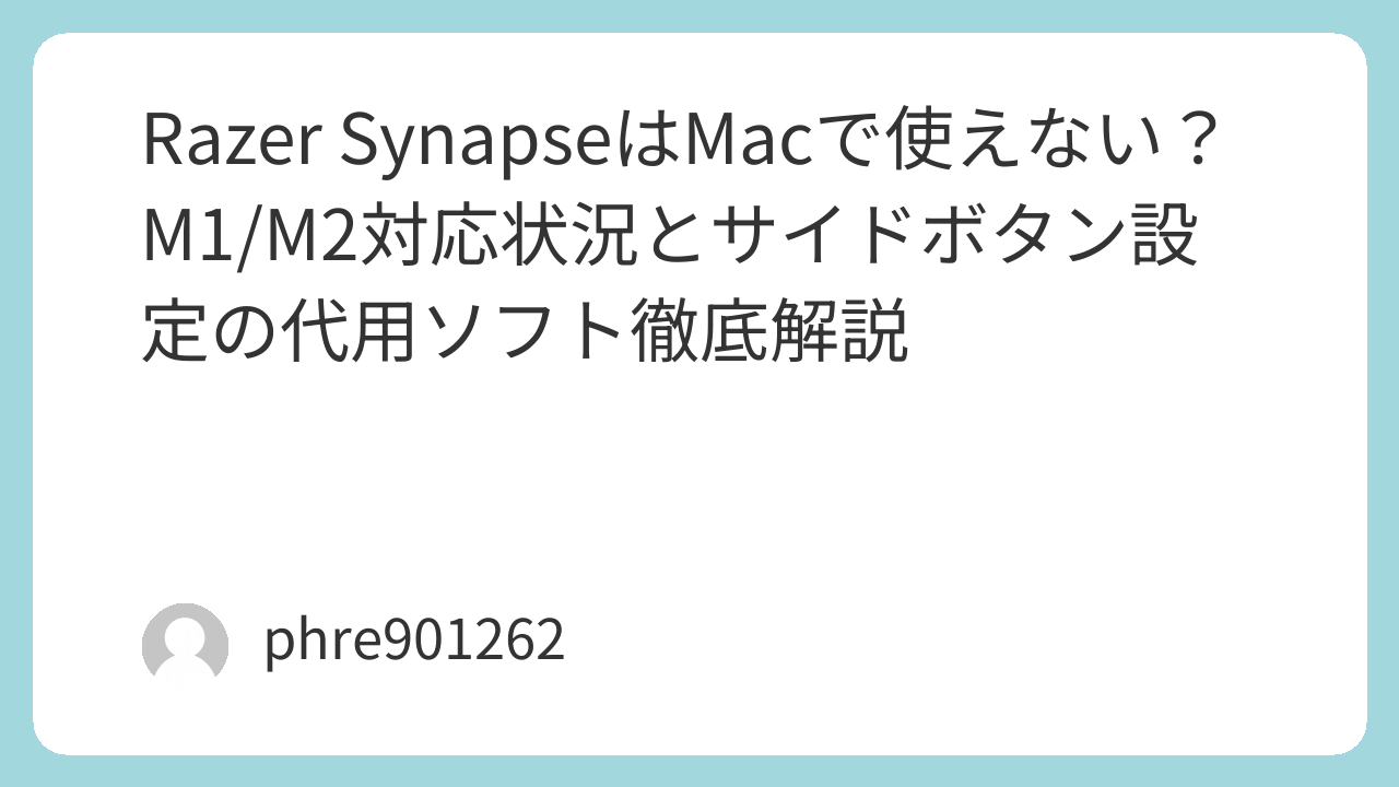 そんな絶望を抱えているMacユーザーの方は多いのではないでしょうか。私もその一人でした。Windowsで最強だった[amazon_link product=”Razer DeathAdder”]や[amazon_link product=”Razer Naga”]が、Macに繋いだ途端に「ただの光る塊」に成り下がるあの感覚。