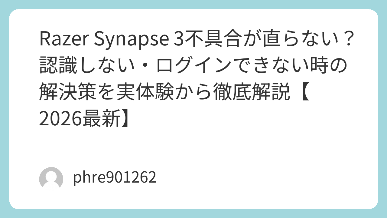 Razer Synapse 3不具合が直らない?認識しない・ログインできない時の解決策を実体験から徹底解説【2026最新】