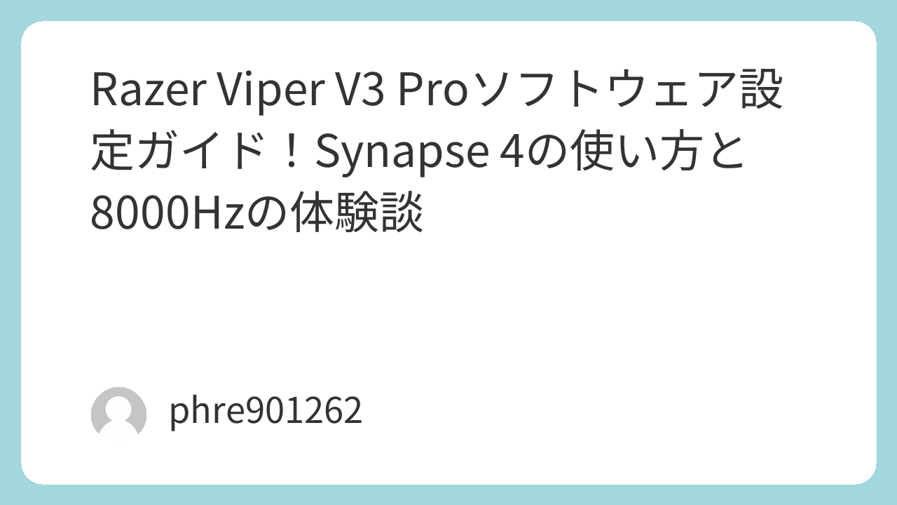 私が実際に[amazon_link product=”Razer Viper V3 Pro”]を使い込み、試行錯誤してたどり着いた「勝てる設定」と、最新のソフトウェア環境について徹底的に解説します。