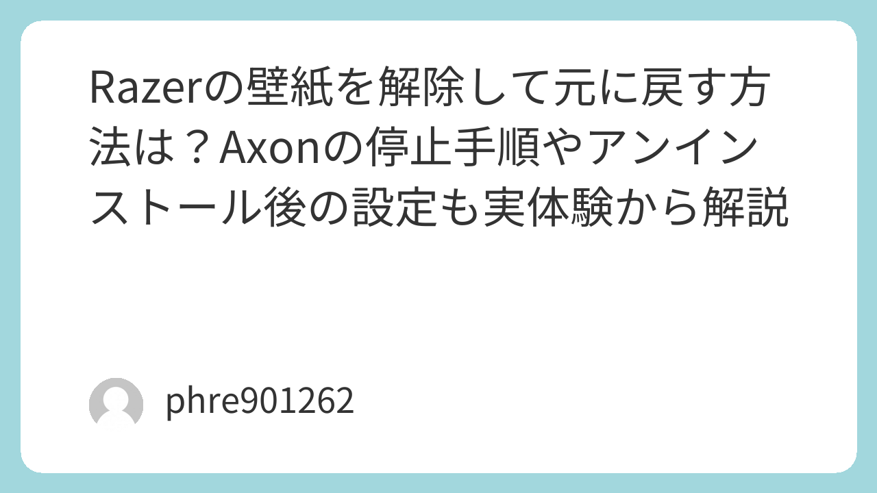 多くの人が陥る罠が「Windowsの個人用設定から変えようとすること」です。しかし、[amazon_link product=”Razer Axon”]が起動している限り、アプリ側の制御が優先されます。まずはアプリ側で「壁紙機能」を止めましょう。