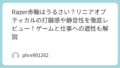 - バックグラウンドの常駐: 「[amazon_link product=”Razer Synapse”]」が常に動くため、極限までPC負荷を減らしたい超ガチ勢には気になるかもしれません。とはいえ、最近のゲーミングPCなら挙動に影響が出るレベルではありません。