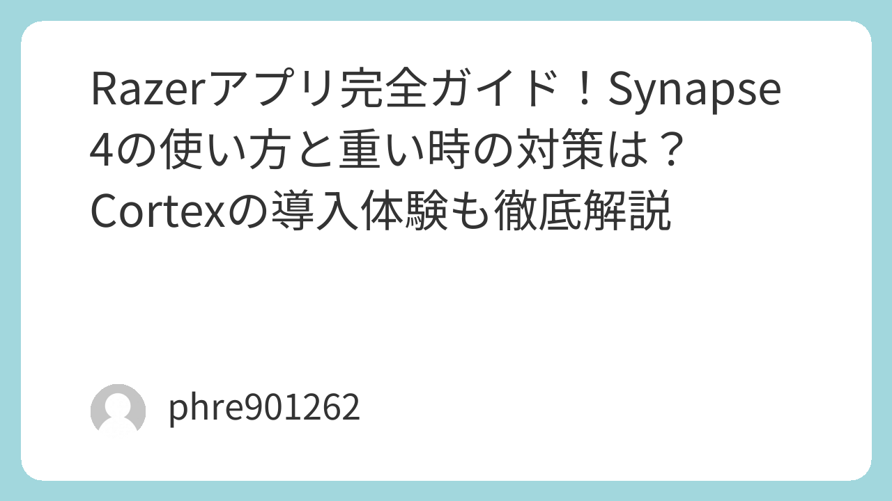 「Razerのマウスを買ったけど、設定アプリが多すぎてどれを入れればいいかわからない」「Synapseを入れるとPCが重くなるって本当?」