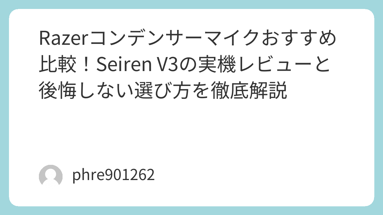 ゲーミングデバイスの王道、Razer。マウスやキーボードを揃えていくと、次に欲しくなるのが「マイク」ですよね。しかし、いざ探してみると[amazon_link product=”Razer Seiren”]シリーズは種類が多く、「どれを買えば失敗しないのか」「USBマイクで本当に配信クオリティになるのか」と悩んでしまう方も多いはず。