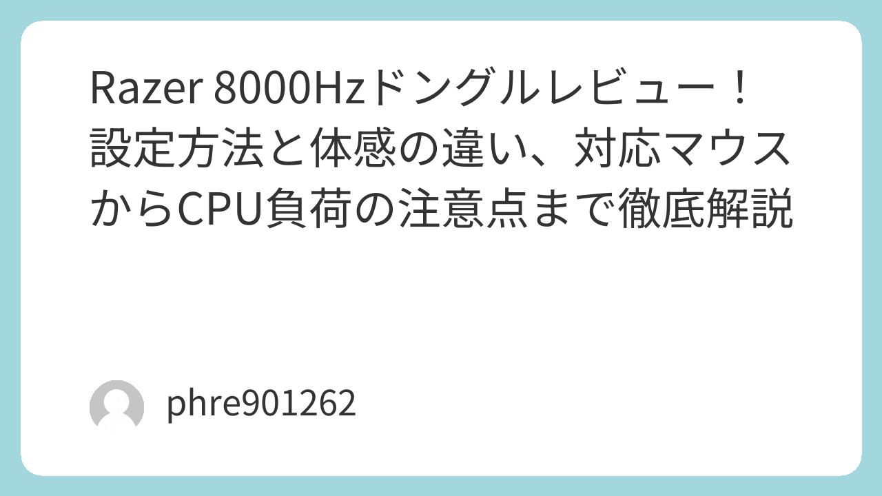 Razer 8000Hzドングルレビュー!設定方法と体感の違い、対応マウスからCPU負荷の注意点まで徹底解説