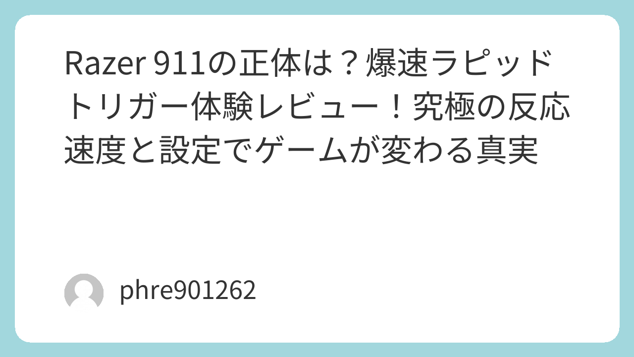 「Razer 911」という言葉に惹かれてこの記事に辿り着いたあなたなら、心のどこかで「もっと速くなれるはずだ」と信じているはずです。