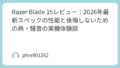 一方で、パームレストは比較的クールに保たれていますが、キーボード上部のアルミ部分は触れると「アチッ」となるレベルまで熱を持ちます。この熱設計の潔さは、いかにもRazerらしいと感じるポイントです。
