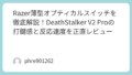 この「Razer メカニカルタクタイル アクションボタン」は、わずか0.65mmという浅いアクチュエーションポイントで反応します。これが実戦では驚くほど効く。指が疲れないだけでなく、入力の遅れが自分の体感レベルで消える感覚です。