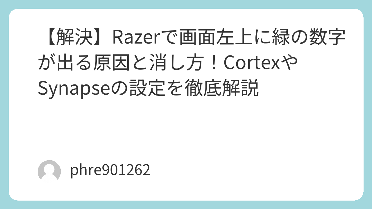 お気に入りの[amazon_link product=”Razer”]のキーボードやマウスを新調して、意気揚々とゲームを起動した直後。画面の左上に居座る謎の「緑色の数字」に困惑したことはありませんか?