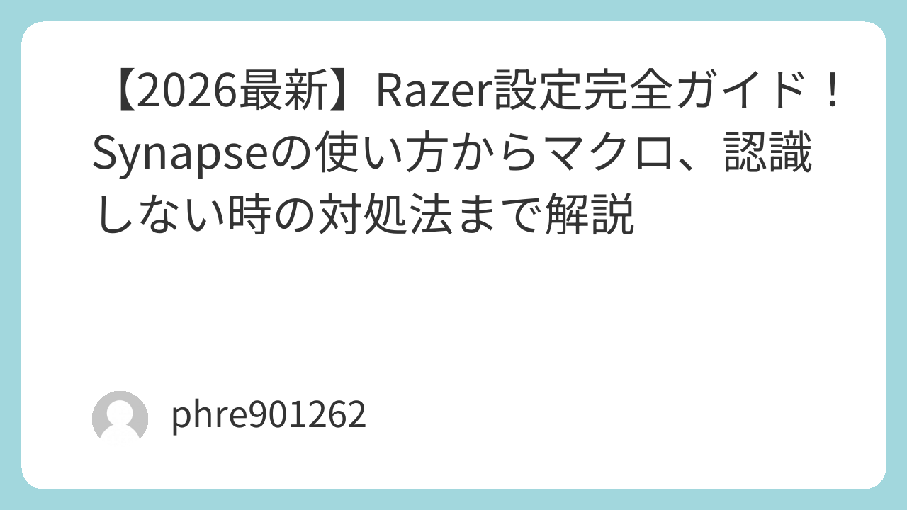 【2026最新】Razer設定完全ガイド!Synapseの使い方からマクロ、認識しない時の対処法まで解説