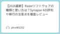 もし古いSynapse 3を使い続けているなら、2026年現在の最新版である「Synapse 4」への移行を検討してください。動作が大幅に軽量化されており、以前のようなクラッシュが激減しています。