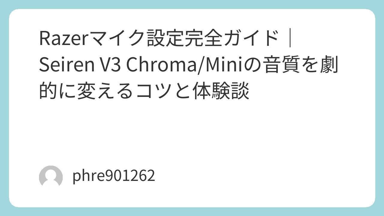 Razerのマイクは、ただUSBを差し込むだけではポテンシャルの30%も発揮できていません。私自身、初めて[amazon_link product=”Razer Seiren Mini”]を手にした時は、そのあまりの「設定項目の少なさ(に見える外見)」に油断し、スカスカな音質で配信を続けてしまった苦い経験があります。