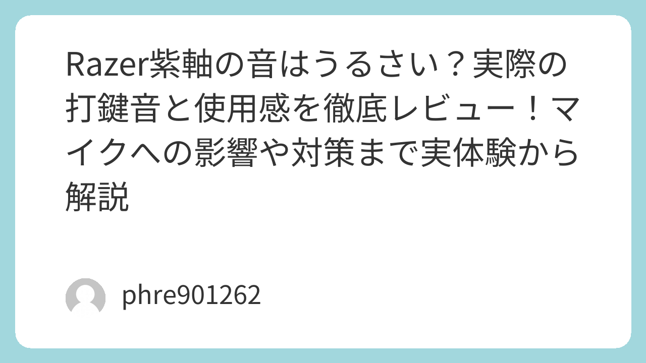 私自身、初めて[amazon_link product=”Razer Huntsman V2″]の紫軸に触れたときは、その軽快なサウンドと指先に伝わるフィードバックに鳥肌が立ったのを覚えています。しかし、いざ自宅で使い始めると「あれ、これ夜中に叩いて大丈夫か?」と冷や汗をかいたのも事実です。