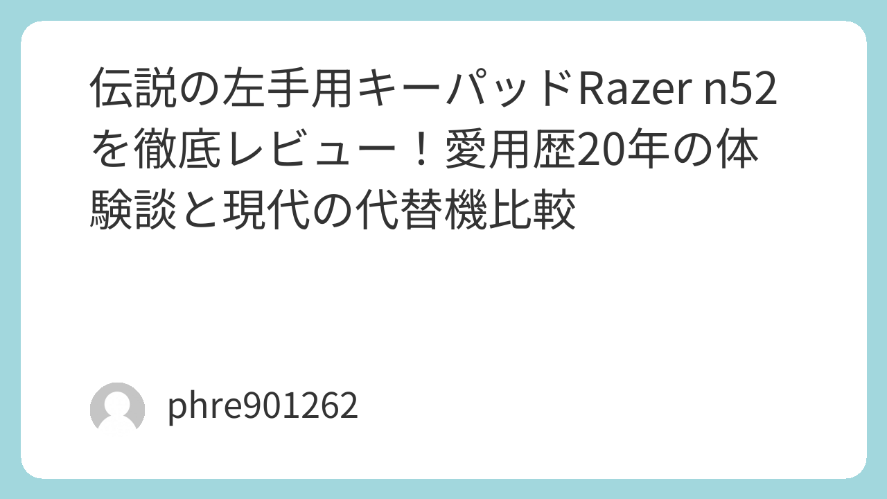 この記事の続きとして、最新のRazer製左手デバイスとn52の操作感を徹底的に比較した検証記事を作成しましょうか?