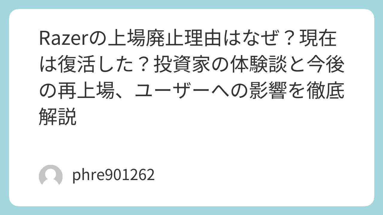 かつて株を持っていた人も、これから[amazon_link product=”Razer DeathAdder”]を買いに行く人も、このブランドが持つ「For Gamers. By Gamers.」という精神が、非公開化によってより純粋に磨かれていることを信じて良いでしょう。次に彼らが証券市場に現れる時、それは世界を驚かせる「完全復活」の瞬間になるはずです。