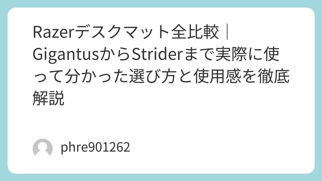 - 表面素材の相性:滑りを重視するならハイブリッド型の[amazon_link product=”Razer Strider”]、安定感を重視するなら[amazon_link product=”Razer Gigantus V2″]という棲み分けが明確です。