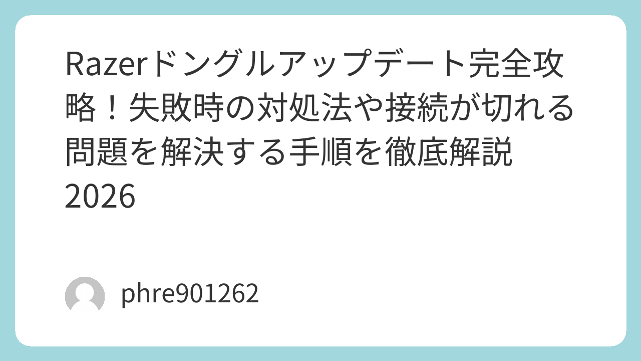 Razerドングルアップデート完全攻略!失敗時の対処法や接続が切れる問題を解決する手順を徹底解説2026