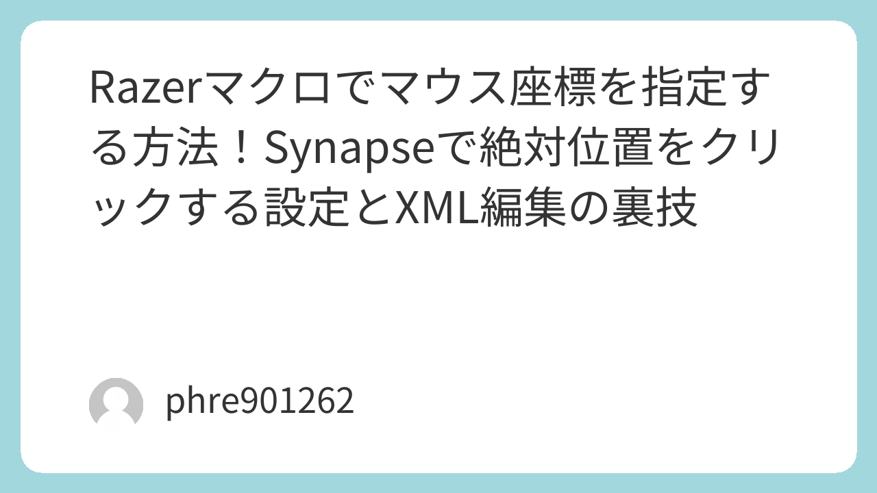 [amazon_link product=”Razer”]のマクロで座標を操るコツは、**「記録で大枠を作り、XML編集で精度を磨く」**ことにあります。
