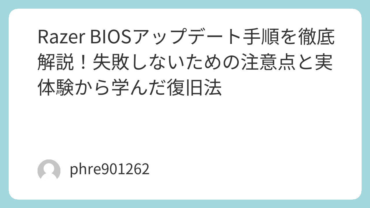 Razer BIOSアップデート手順を徹底解説!失敗しないための注意点と実体験から学んだ復旧法