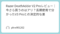 - デスク周りをスッキリさせ、ケーブルの摩擦から完全に解放されたいなら、[amazon_link product=”Razer DeathAdder V3 Pro”](無線版)。
