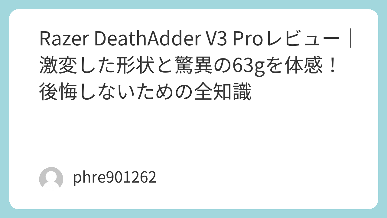 [amazon_link product=”Razer DeathAdder V3 Pro”]を手にして最も驚いたのは、その「持ちやすさ」の質が変わったことです。
