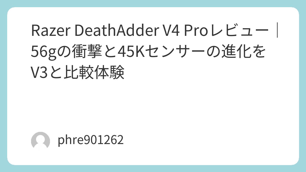Razer DeathAdder V4 Proレビュー|56gの衝撃と45Kセンサーの進化をV3と比較体験