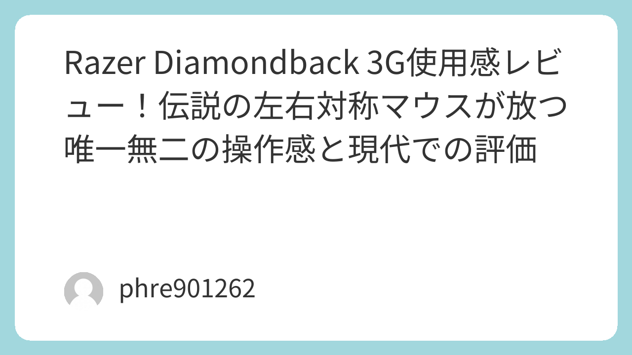 今回は、数々の戦場を共に駆け抜けた[amazon_link product=”Razer Diamondback 3G”]について、その独特すぎる使用感と、現代のデバイスと比較して見えてくる真価を、実体験に基づき徹底的に掘り下げていきます。