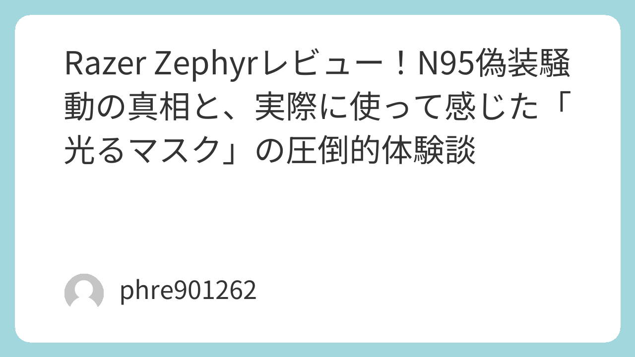 [amazon_link product=”Razer Zephyr”]は、万人に勧められる「衛生用品」ではありません。N95認証を巡る問題もありましたし、決して安価な買い物でもありません。