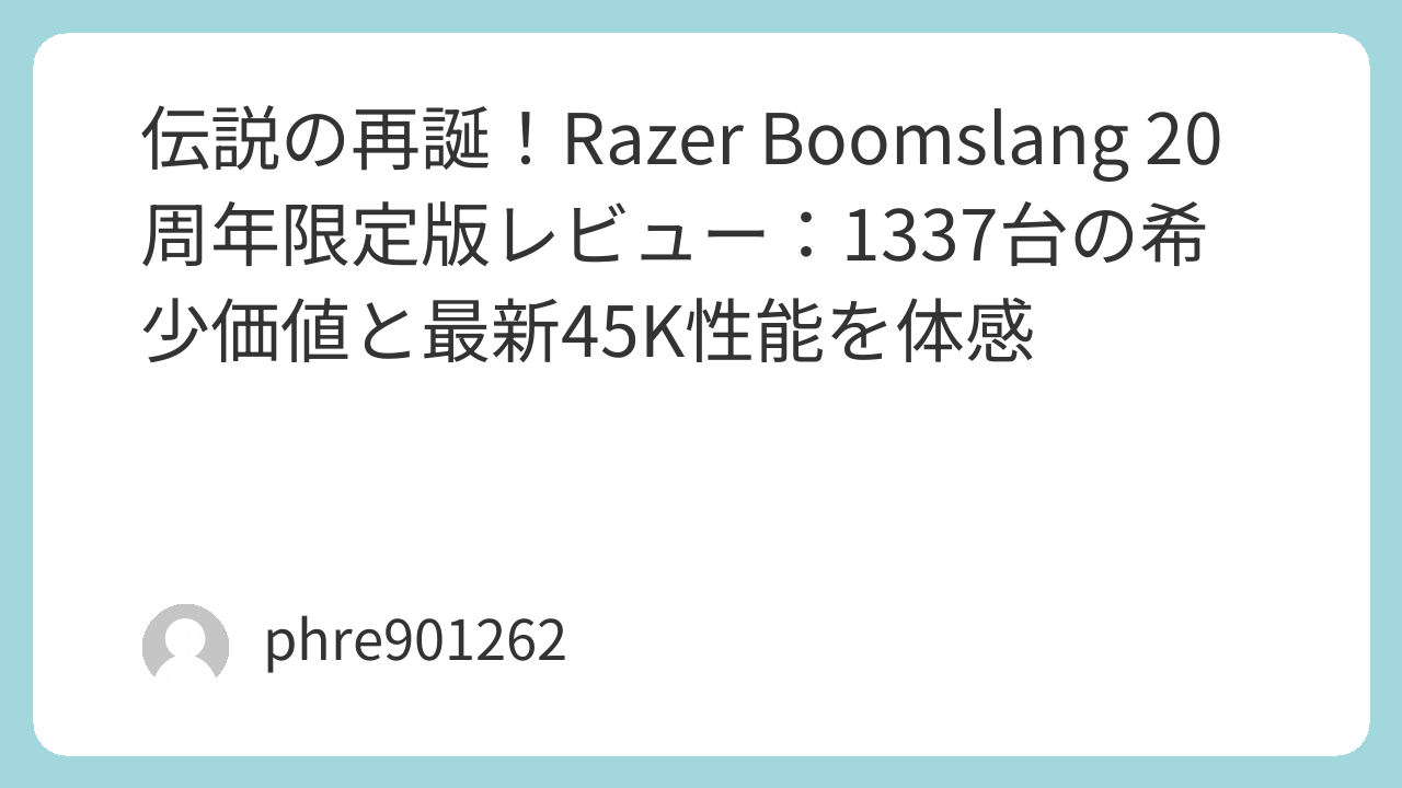 この記事の内容に合わせて、[amazon_link product=”Razer Boomslang 20th Anniversary Edition”]のスペック比較表を作成したり、SNS拡散用の短文を作成したりすることも可能です。