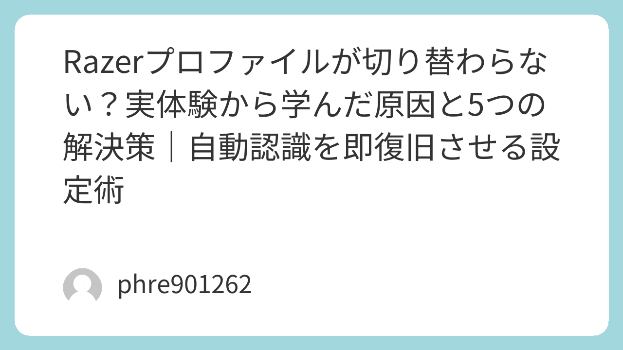 Razerプロファイルが切り替わらない?実体験から学んだ原因と5つの解決策|自動認識を即復旧させる設定術