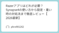 古い[amazon_link product=”Razer Synapse 3″]の設定ファイルが残っていると、新エンジンと競合して悪さをすることがあります。一度すべてのRazer関連ソフトをアンインストールし、公式サイトから最新版を入れ直すのが最も確実な解決策でした。