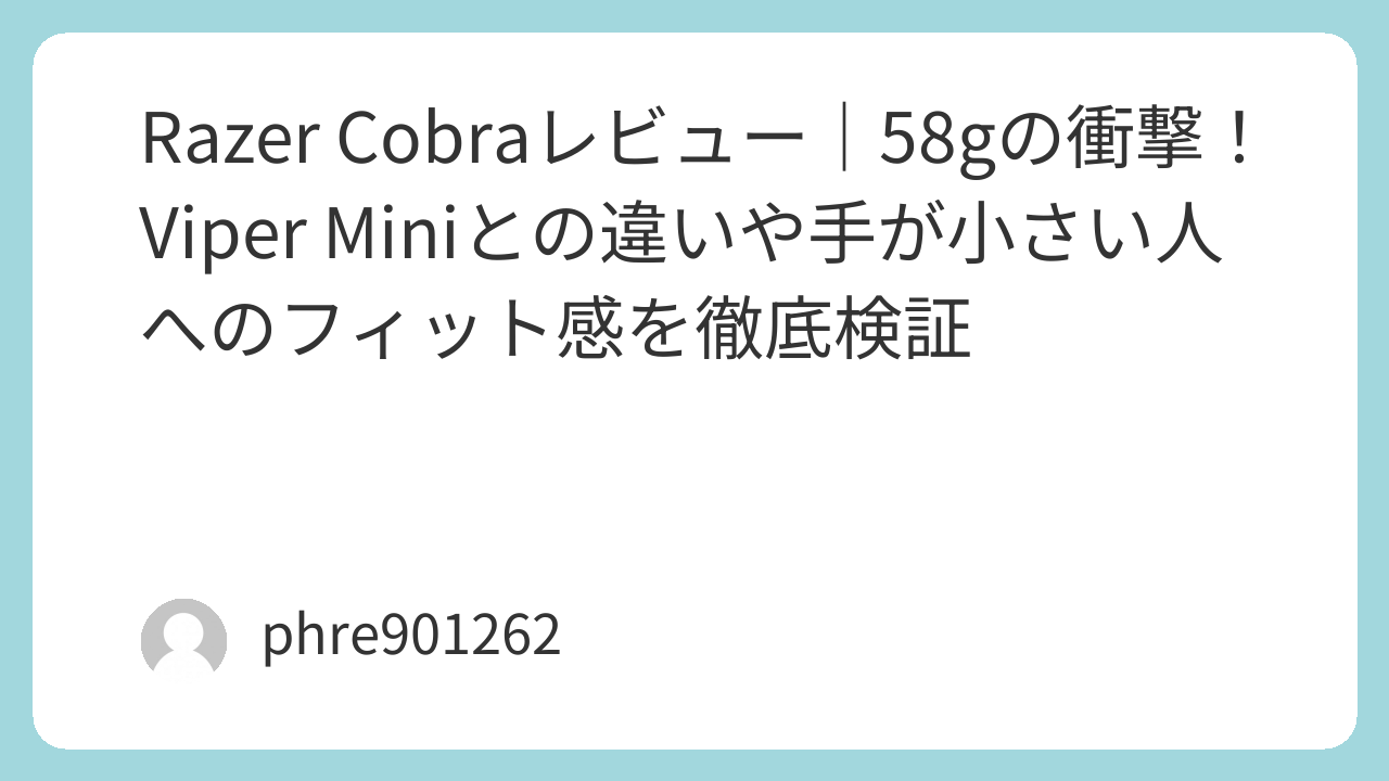 ゲーミングマウス選びで「軽さは正義」と考えているなら、[amazon_link product=”Razer Cobra”]は避けて通れない存在です。長年愛された名機「Viper Mini」の精神的後継モデルとして登場したこのマウスを、実際にFPSや普段使いで使い倒した経験をもとに、その「化け物じみたコスパ」と「唯一無二の操作感」を本音でレビューします。