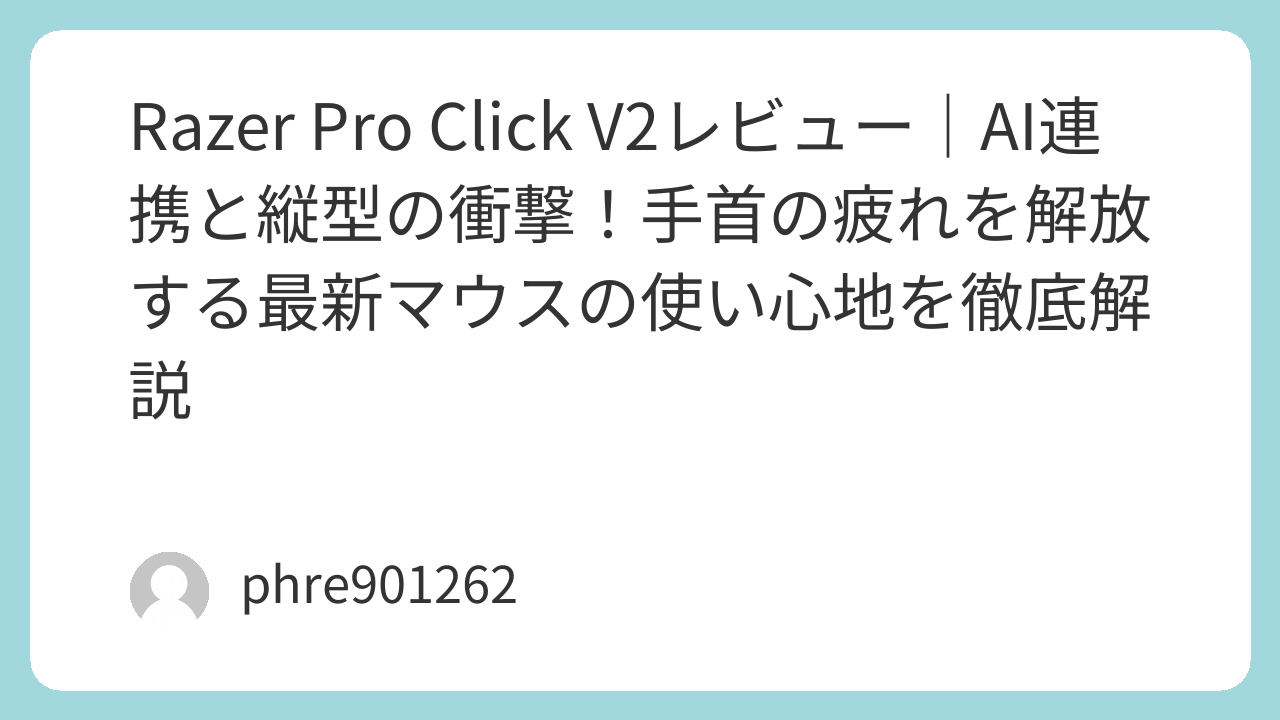Razer Pro Click V2レビュー|AI連携と縦型の衝撃!手首の疲れを解放する最新マウスの使い心地を徹底解説