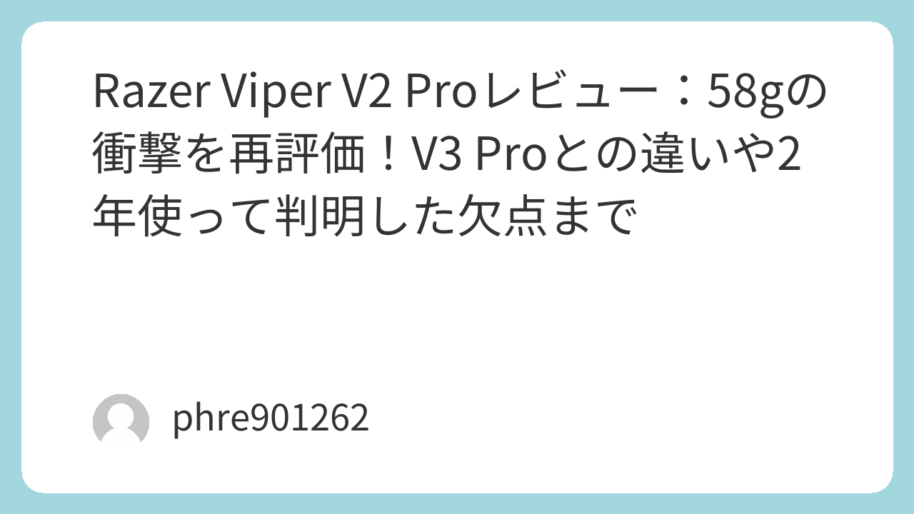 これまで [amazon_link product=”Razer Viper Ultimate”] や他の軽量マウスを渡り歩いてきましたが、[amazon_link product=”Razer Viper V2 Pro”] がもたらした変化は劇的でした。