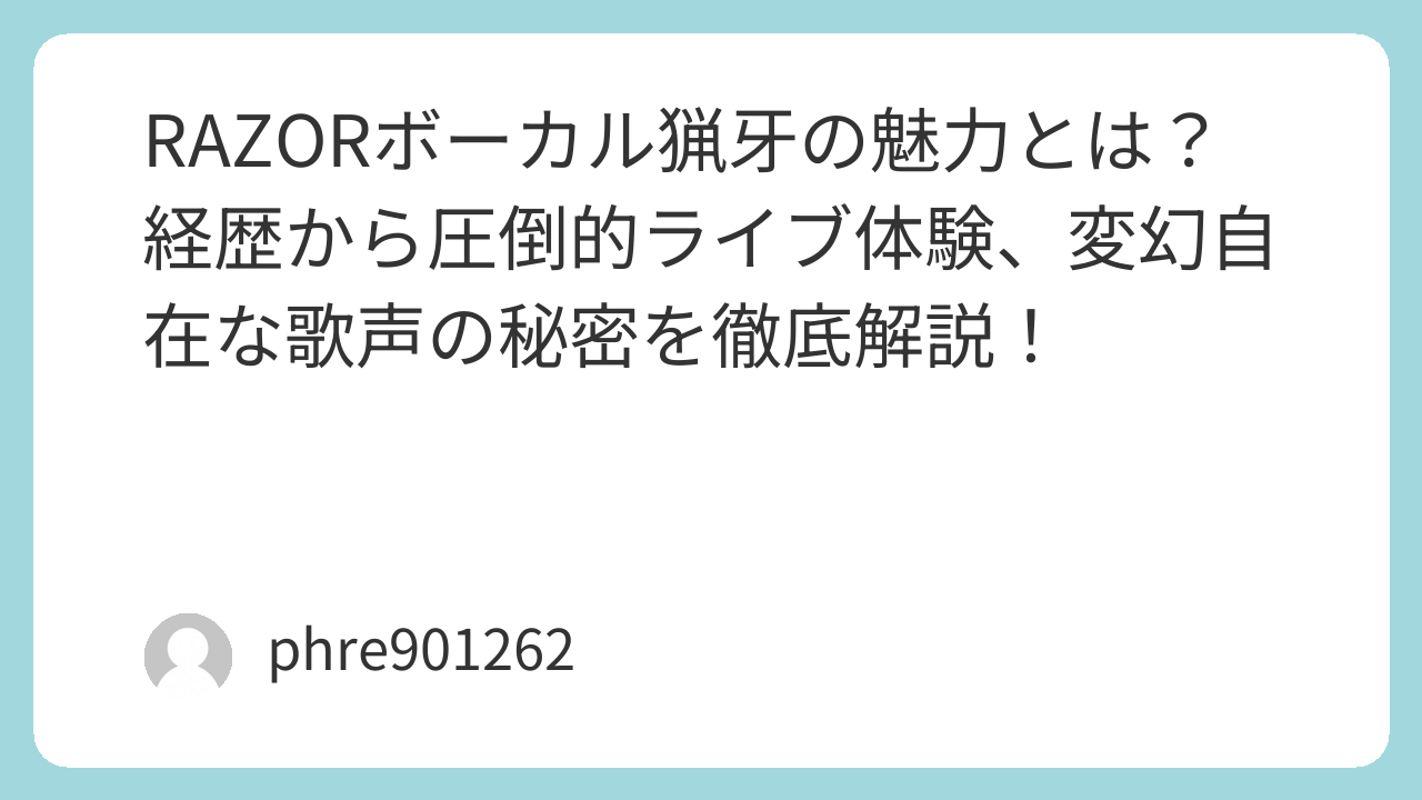 かつてBORNのボーカリストとしてシーンに衝撃を与えた彼が、さらなる高みを目指して結成したRAZOR。その中心で叫び続ける猟牙の歌声には、単なる音楽を超えた「生き様」が刻まれている。