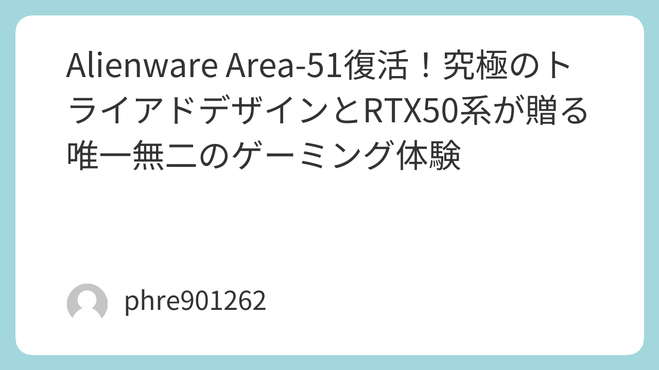 Alienware Area-51復活!究極のトライアドデザインとRTX50系が贈る唯一無二のゲーミング体験