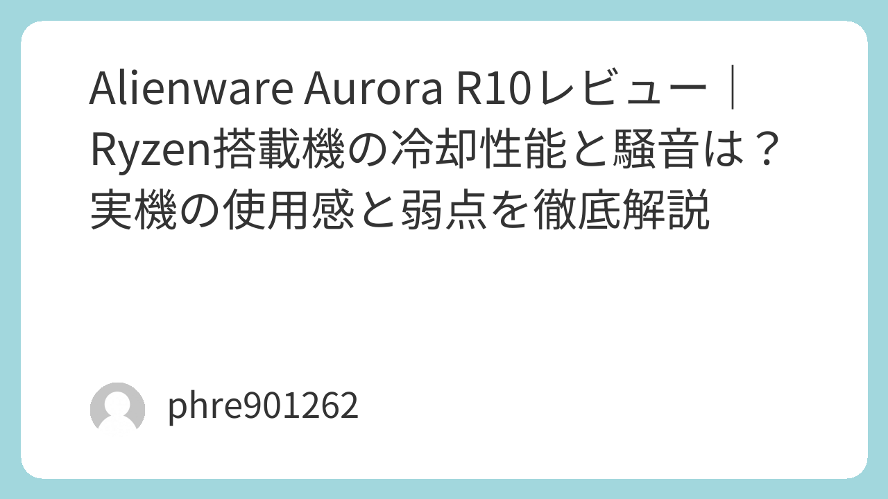 今回は、AMD Ryzenプロセッサーを搭載した[amazon_link product=”Alienware Aurora R10″]の真価を、体験談ベースで徹底的に深掘りします。