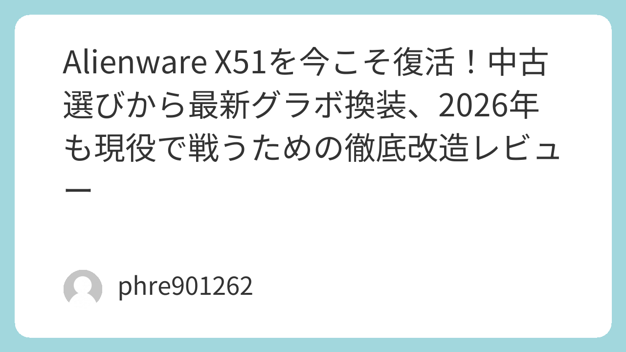 もし、押し入れで眠っている[amazon_link product=”Alienware X51″]があるなら、あるいは中古ショップで寂しそうに並んでいる個体を見つけたなら、ぜひ救い出してみてください。適切なパーツ選びと少しの勇気があれば、それは2026年でも十分に「戦える相棒」へと進化します。