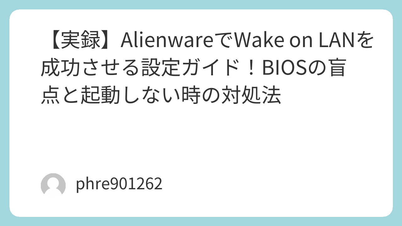 【実録】AlienwareでWake on LANを成功させる設定ガイド!BIOSの盲点と起動しない時の対処法