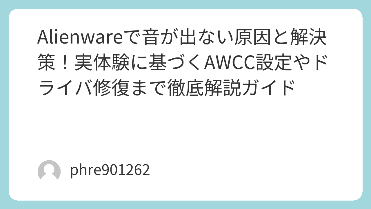 [amazon_link product=”Alienware”] で音が出ない問題の9割はソフトウェア、特にAWCCとWindowsドライバの不協和音です。