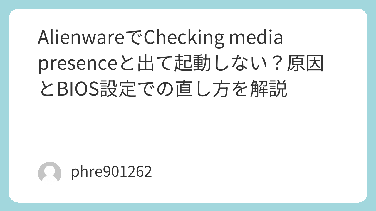 「昨夜まで普通に動いていたのに…」と、愛機の[amazon_link product=”Alienware”]を起動して絶望したことはありませんか?画面にポツンと表示される「Checking Media Presence」の文字。その後、Windowsが立ち上がらずにBIOS画面へ戻ってしまう。私自身もこのループに陥り、冷や汗をかいた経験があります。
