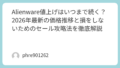 - 周辺機器とのセットアップ: [amazon_link product=”Alienware”]の真価は、純正の[amazon_link product=”Alienware ゲーミングモニター”]やマウスと揃えた時に発揮されます。一貫したエコシステムによる操作感の統一は、価格以上の効率を生みます。