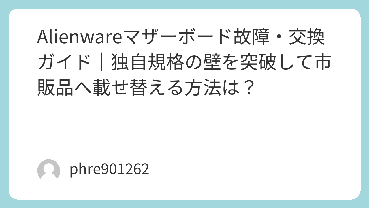Alienwareマザーボード故障・交換ガイド|独自規格の壁を突破して市販品へ載せ替える方法は?