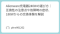 迷ったら[amazon_link product=”Alienware 240W ACアダプター 純正”]一択です。BIOSの互換性チェックに弾かれることもなく、本体への負荷も最小限に抑えられます。中古で本体のみ購入した方は、少し高くても純正を推奨します。