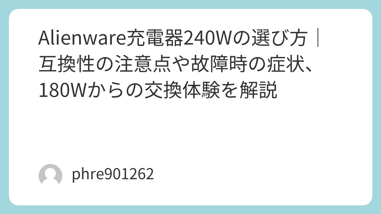 今回は、自身の失敗談と解決策をベースに、Alienware用240W充電器の選び方と、180Wからアップグレードした際のリアルな変化をまとめました。