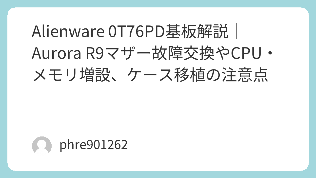 Alienware 0T76PD基板解説|Aurora R9マザー故障交換やCPU・メモリ増設、ケース移植の注意点