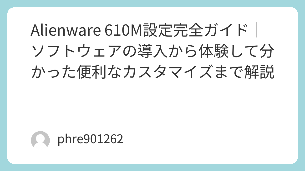 Alienware 610M設定完全ガイド|ソフトウェアの導入から体験して分かった便利なカスタマイズまで解説