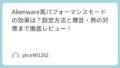 作業中は「静音」、全力でプレイする時は「パフォーマンス」や「オーバードライブ」へと、ワンクリックで性格を変えられます。特に[amazon_link product=”Alienware”]の冷却ファン制御は優秀で、手動でカーブを微調整することで、自分にとって最も心地よい「冷えと静音のバランス」を追求できるのが魅力です。