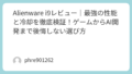 - デスクトップ ([amazon_link product=”Alienware Aurora R16″]): 筐体設計が刷新されたおかげで、静音性が劇的に向上しています。i9-14900KFでフル負荷をかけても、かつての「ジェット機の離陸音」のような騒音はありません。深夜の静かな部屋でも、家族の目を気にせずプレイに集中できるレベルまで進化しています。